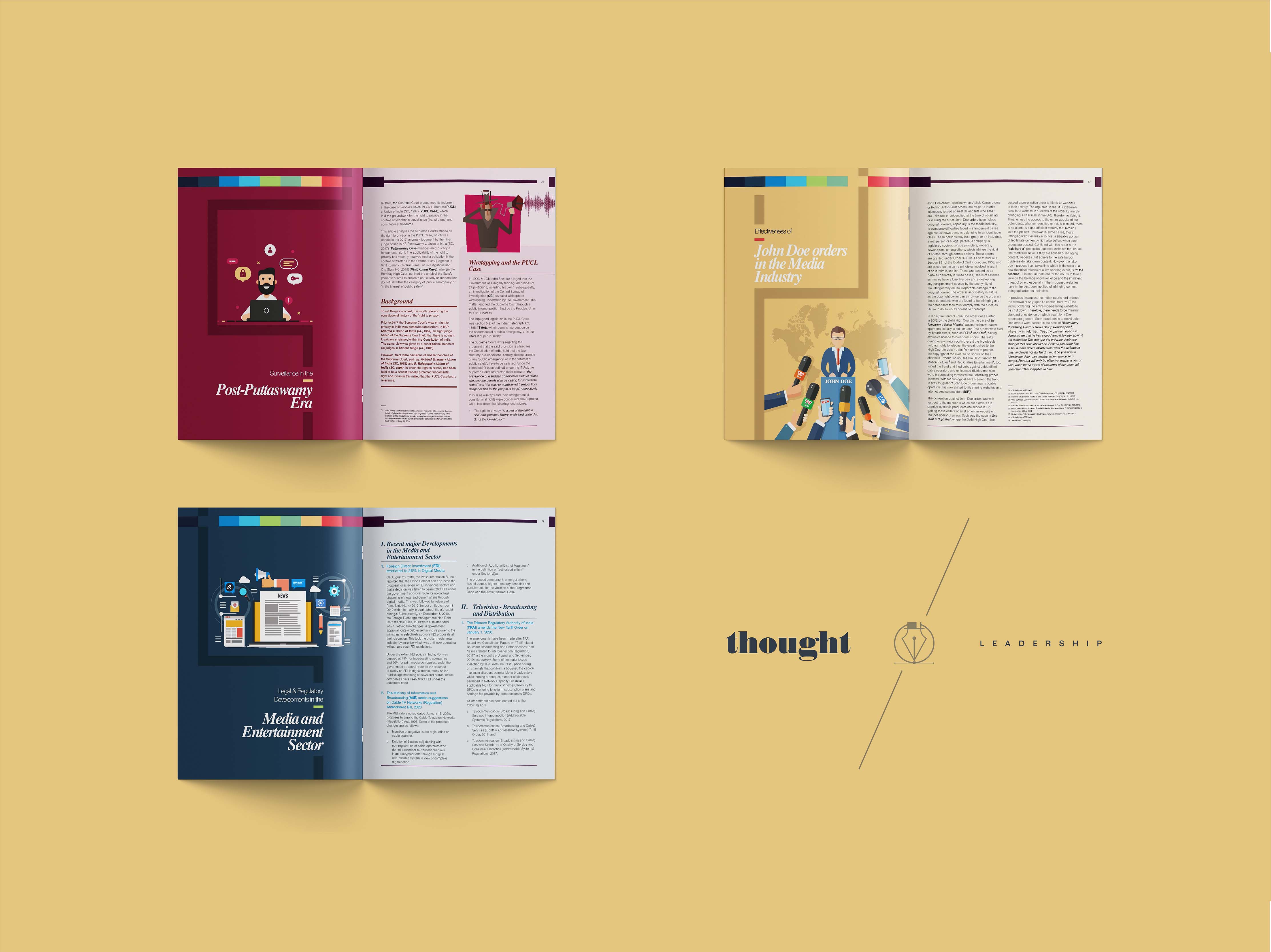 A full-service Indian law firm with its headquarters in Mumbai, India. They needed a completely new design for one of their annual thought leadership report in collaboration with a non-government, not-for-profit organisation that highlights regulatory developments in the field of TV broadcasting and distribution, music, radio, filmed entertainment, and other segments in the Media & Entertainment space.