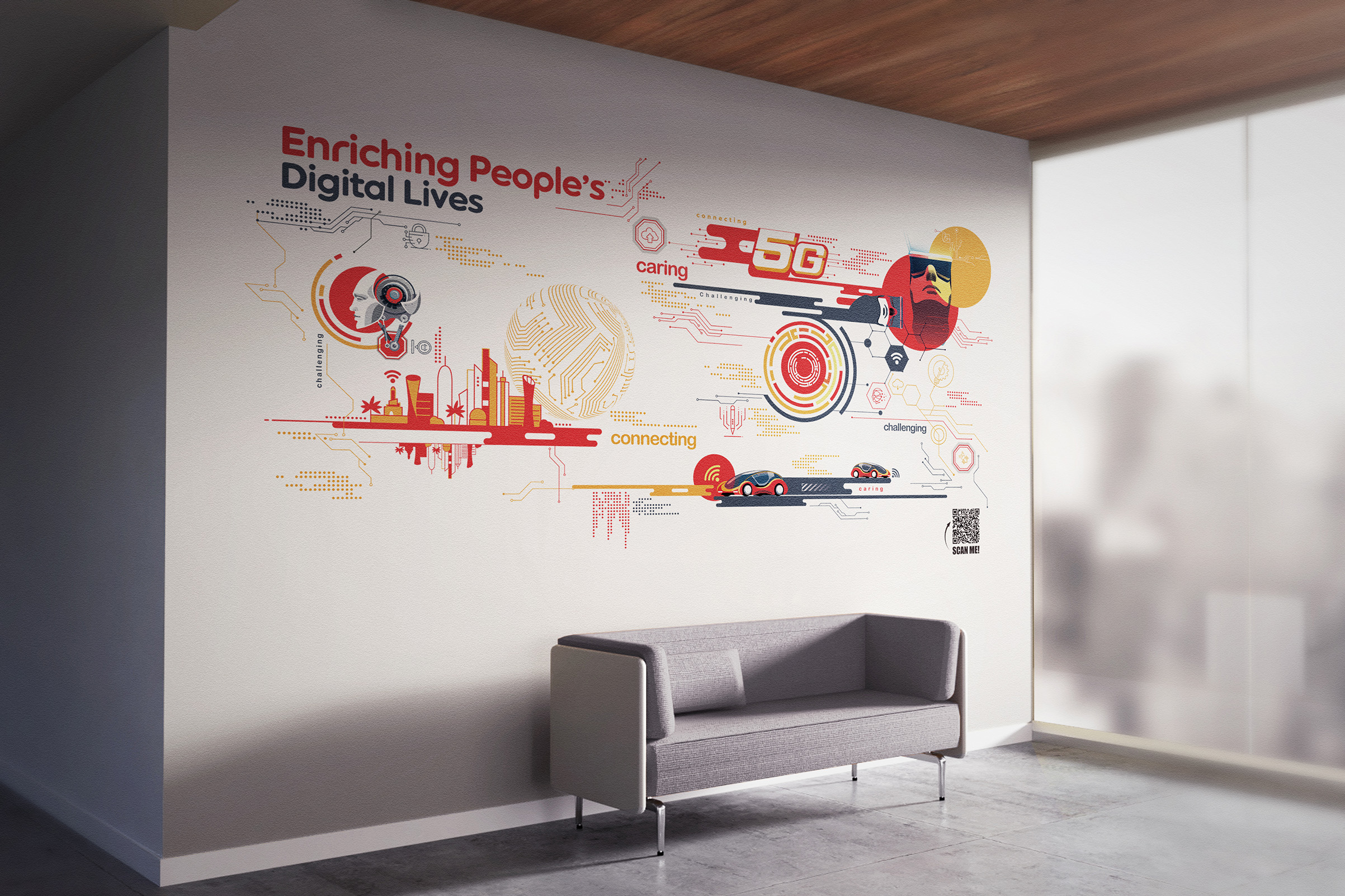 For this groundbreaking project, Remedios Dsilva Designs collaborated with esteemed partners – A leading TMT management consulting firm, and edelVIZ. Together, we joined forces to create an unforgettable experience for one of the largest telecommunication companies’ headquarters in Qatar.